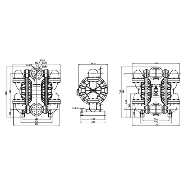 Air Operated Plastic Diaphragm Pump Reciprocating 275gpm 80mm Images |